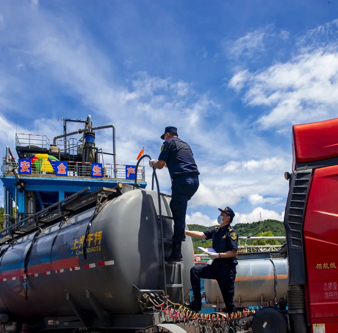 海關(guān)關(guān)員在查驗(yàn)危險(xiǎn)化學(xué)品及包裝